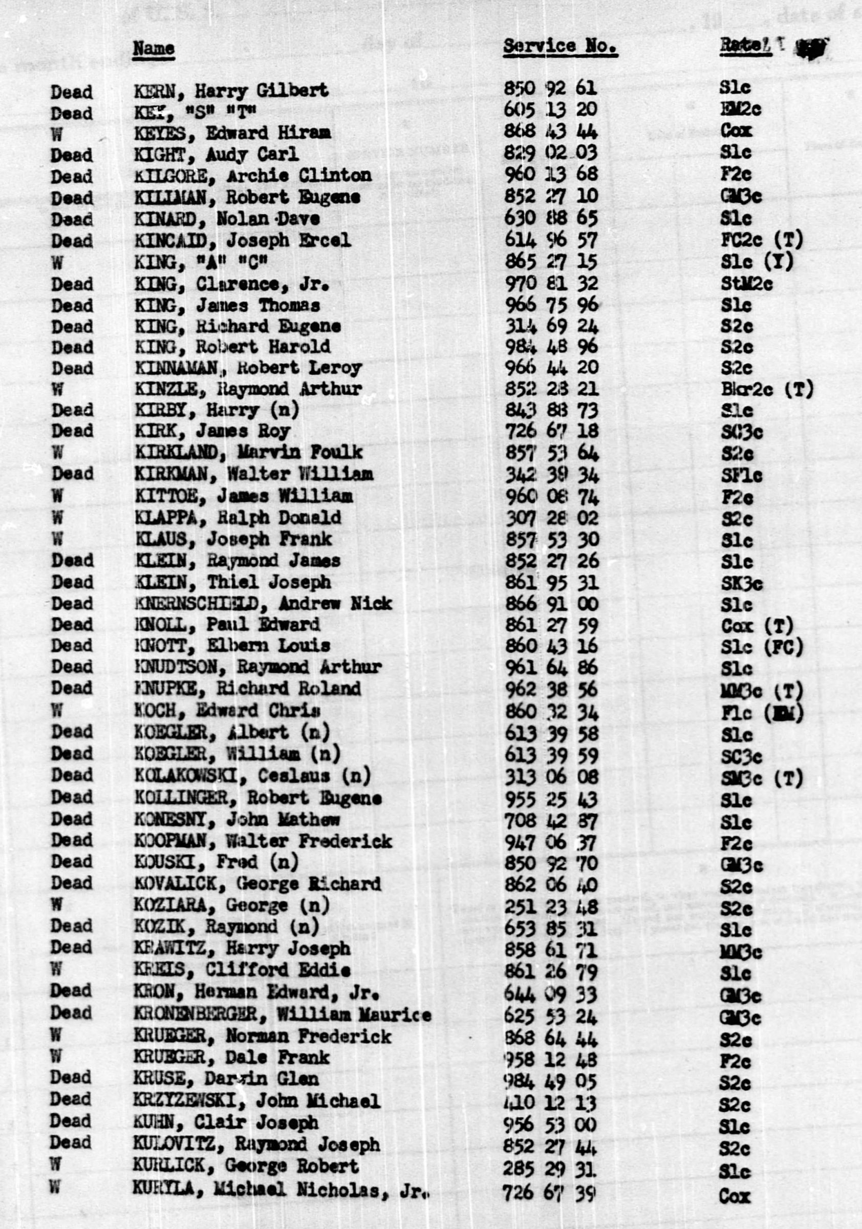 He served as a Seaman Second Class aboard the cruiser USS Indianapolis (CA-35). After delivering the components for the atomic bomb to Tinian Islan, his ship was torpedoed and sunk July 30, 1945. He was lost at sea. He is memorialized at Manila American Cemetery, Fort Bonifacio, Manila, Philippines.