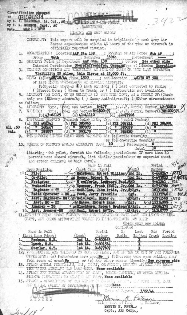 - Service Branch: Army/Army Air Forces