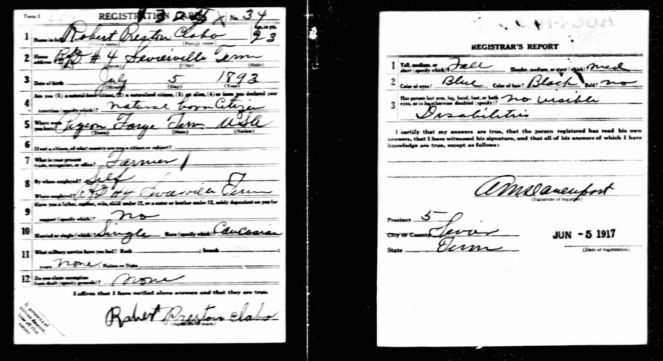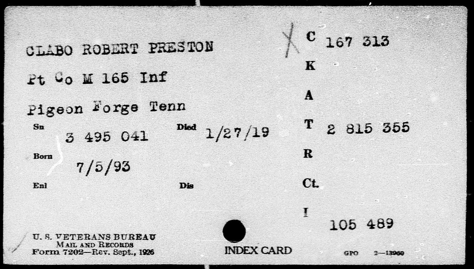 Born 5 July 1893, Pigeon Forge, Sevier County, Tennessee