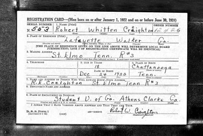 Robert Whitten Creighton was born in Chattanooga, Tennessee, the son of Robert Emmett Creighton and Annie Cornelia Whitten.