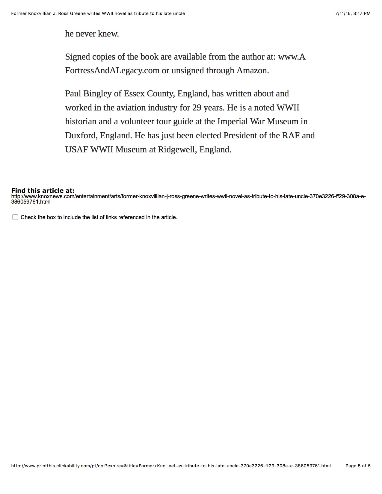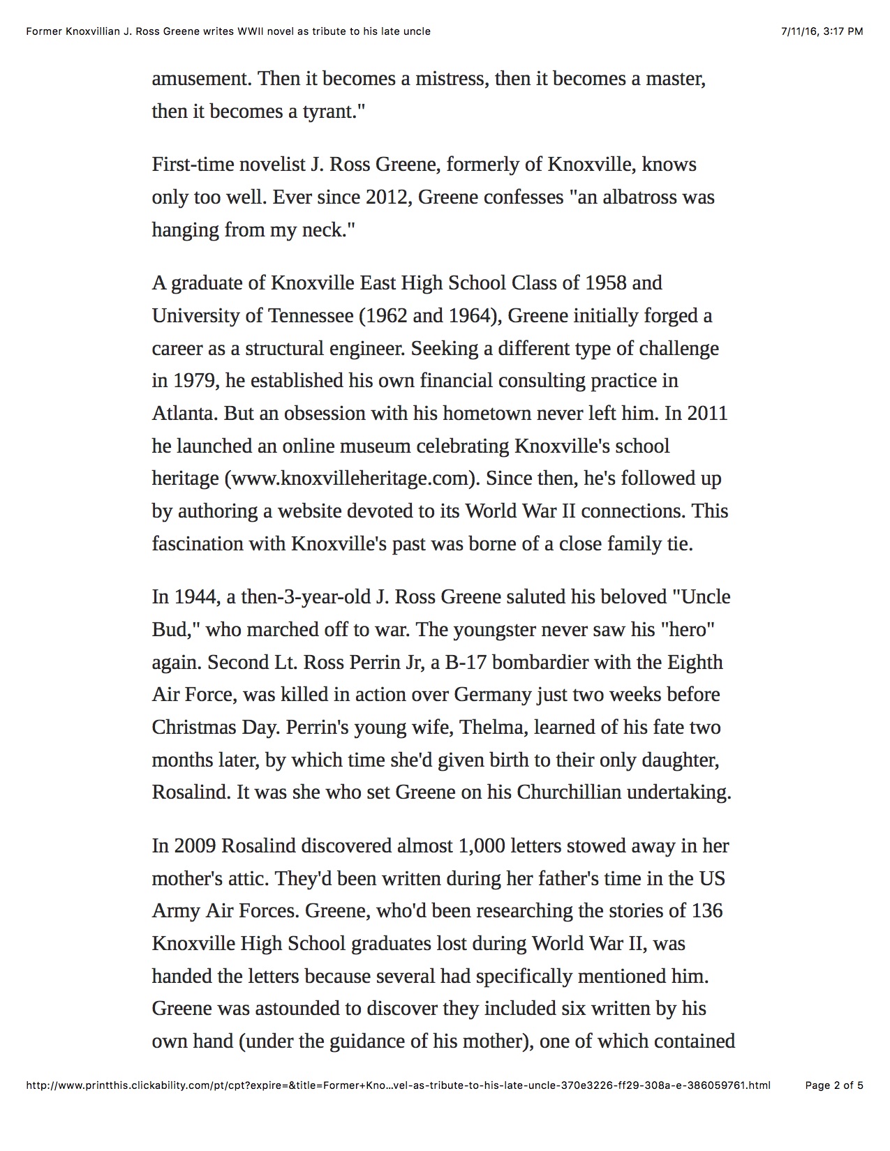 A story of sacrifice, reprinted from the Knoxville News Sentinel