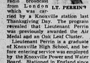 Also in November 1944, Perrin was chosen by the British Broadcasting Co. in London to be interviewed about the war and his missions.
