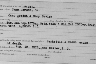 - Division/Assignment: Company I, Development Battalion Camp Sevier