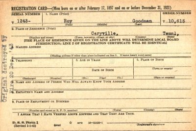Roy Goodman was born in Tennessee in 1921, the son of Henry Goodman and Vanell Smith.