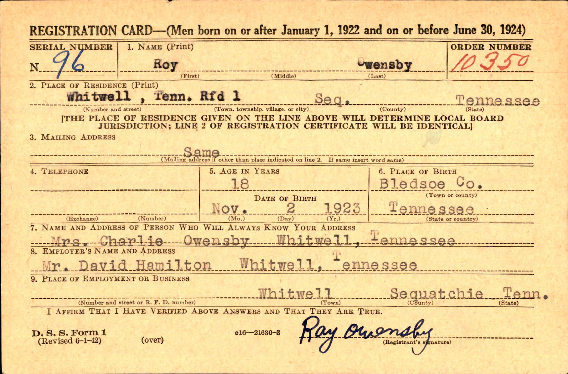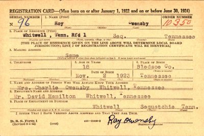 Roy Owensby was born in Bledsoe County, Tennessee. His parents were Charles Owensby and Della Skyles. He had one younger brother, Paul Owensby.