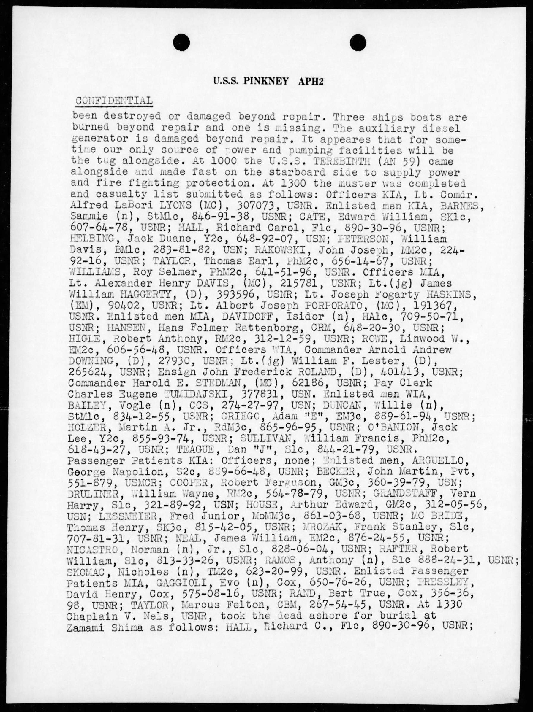 PHM2 Williams entered service at Nashville, November 24, 1942, and received four weeks basic training at San Diego, Calif., four weeks at the U.S. Naval Hospital at Long Beach, Calif., and was then shipped to U.S. Naval Hospital in New Zealand, and from there to the hospital in Sidney, Australia, and then boarded the U.S.S. Pinkey in September, 1944. He was killed in action on Okinawa, April 14, 1945. Before entering service he was employed in the spinning department of the American Bemberg Corporation. He was also a member of the Caldwell Springs Baptist Church.