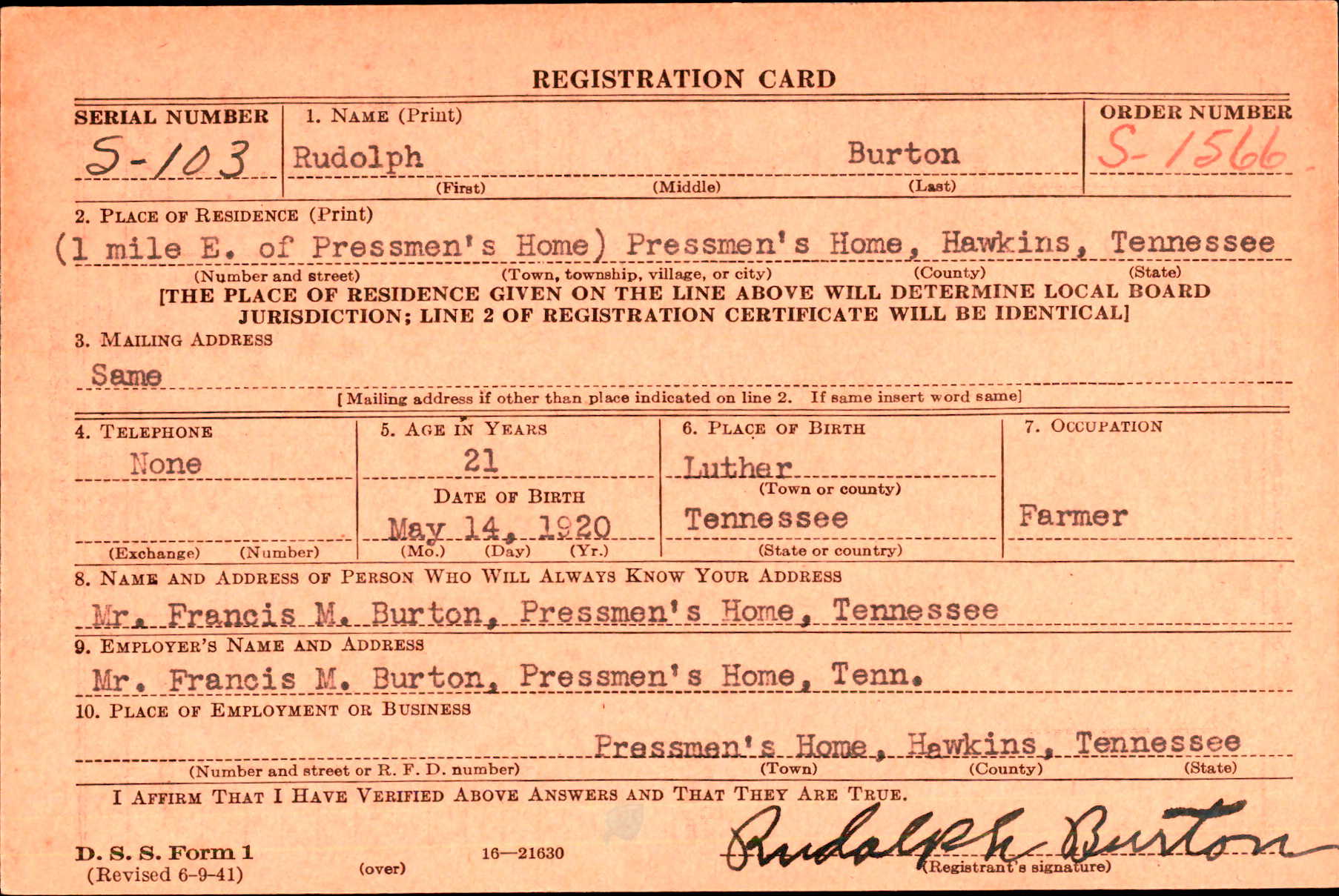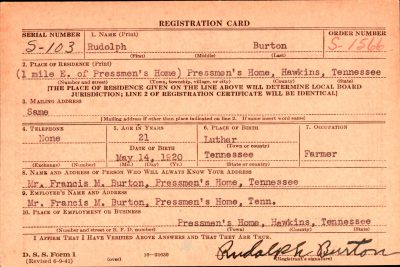 Rudolph Burton was the son of Francis Marion Burton and Maudie Belle Bowlin.