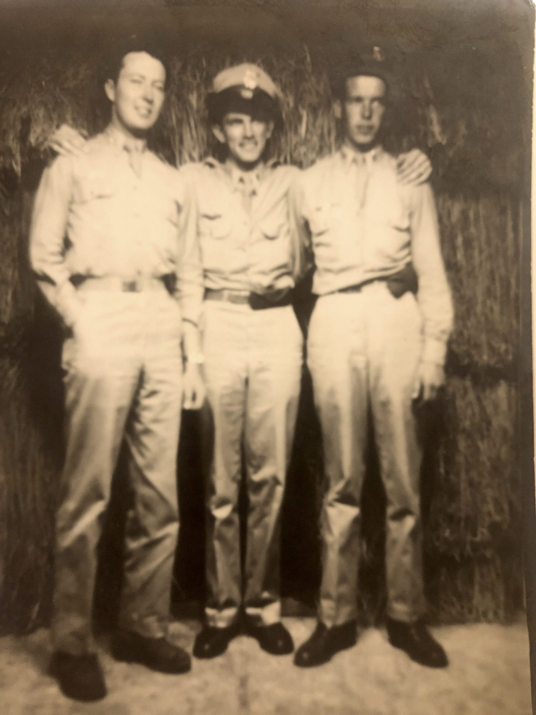In the picture, 2nd Lieutenant Rufus Slaughter Moore is in the middle. The picture was taken in Hawaii in 1945 and was provided by Randall Lake whose father, George Lake, is on the left.