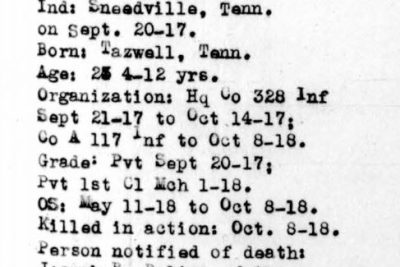 - Division/Assignment: Company A, 117th Infantry Regiment, 30th Infantry Division
