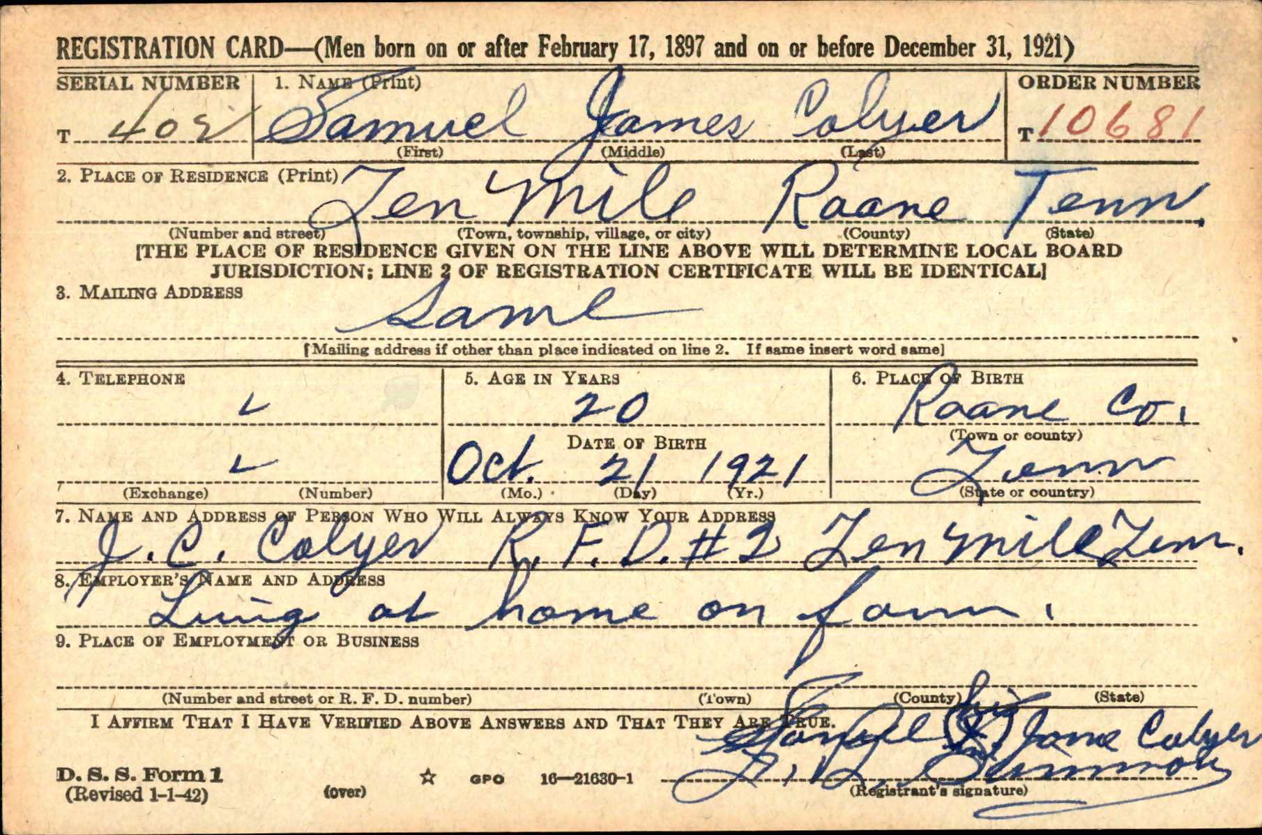 Samuel James Colyerwas the son of James Garfield “Jim” Collier and Maude Billings.