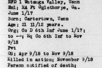 He was killed in action on 6 November 1918 at the age of 21. Buried plot F, row 17, grave 17, Meuse-Argonne American Cemetery, Romagne, France.