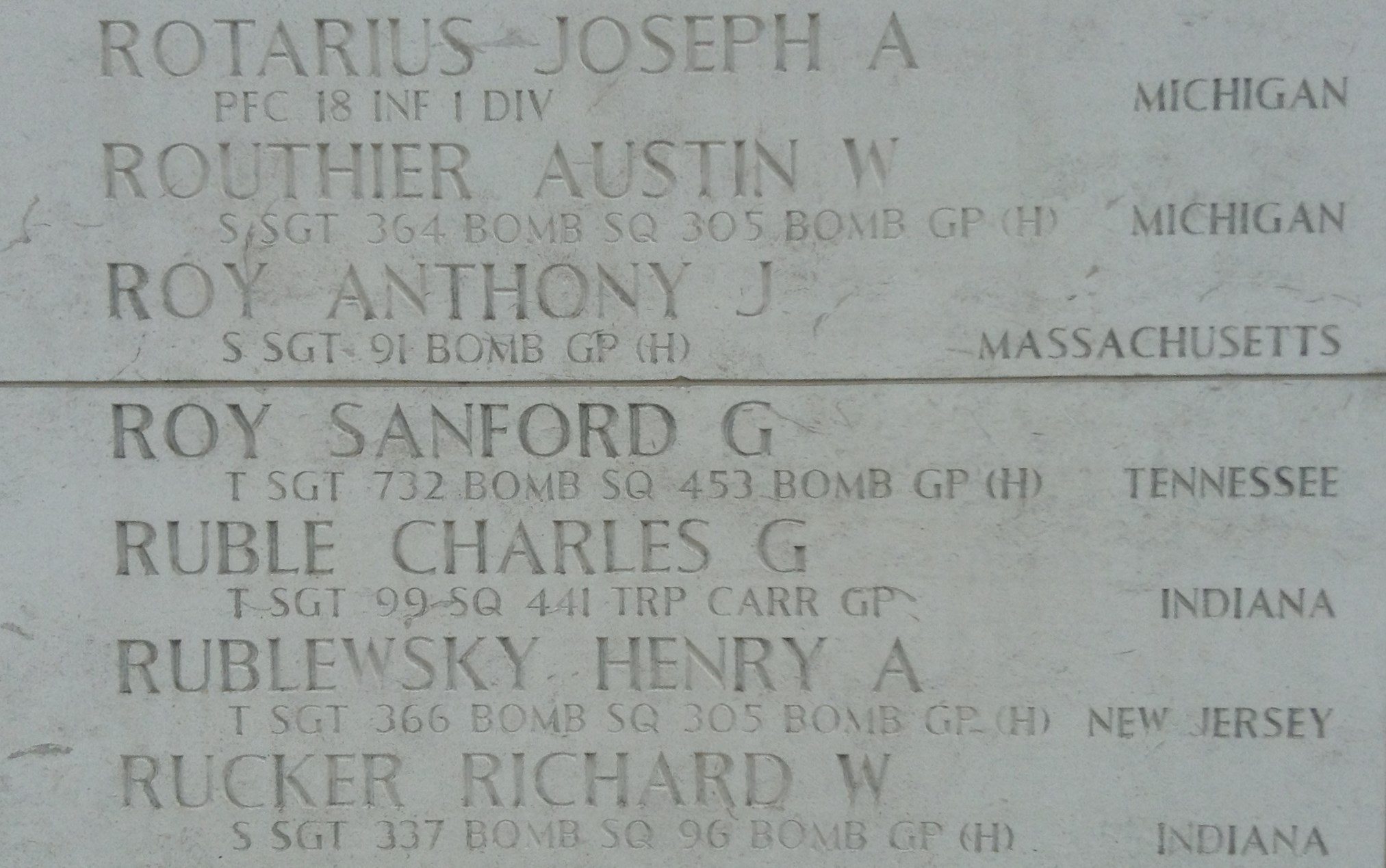 Memorialized at Netherlands American Cemetery, Margraten, Netherlands
