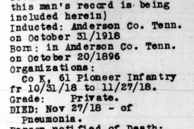 - Burial/Memorial Location: Patterson Cemetery, Anderson County, TN