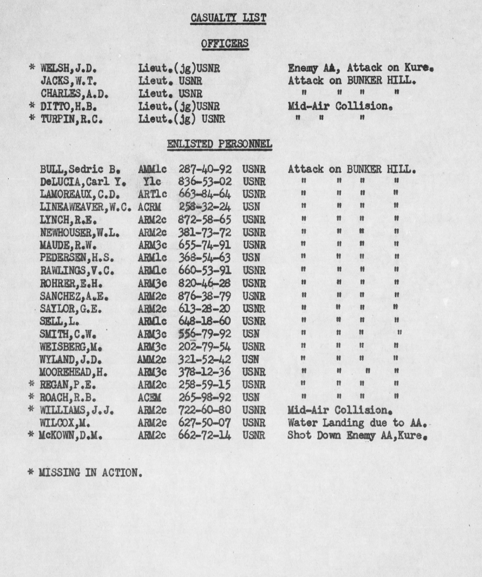 -Died on May 11, 1945, when a Japanese kamikaze nose-dived into the ship at 9:58 AM. The attack killed 393 Americans and was the worst suicide attack against an American interest until September 11, 2001.