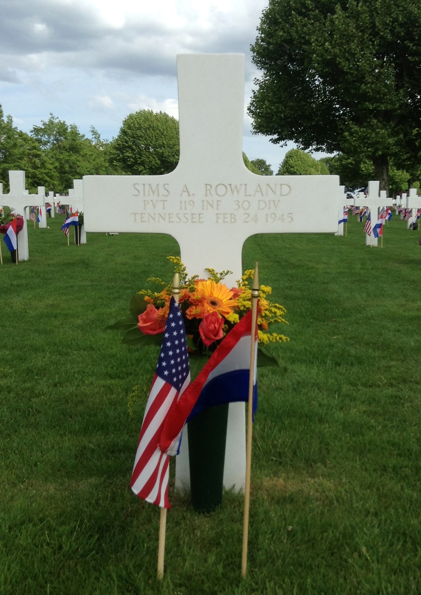 Sims Arbron Rowland was the son of Sims Pierce Rowland and Ada Cassie Maddox. He was married to Iva M. Mosier and father of Mary Frances Rowland, Joyce Rowland and David Sims Rowland. He enlisted at Camp Shelby, Mississippi and was killed in action North of Hambach, Germany.