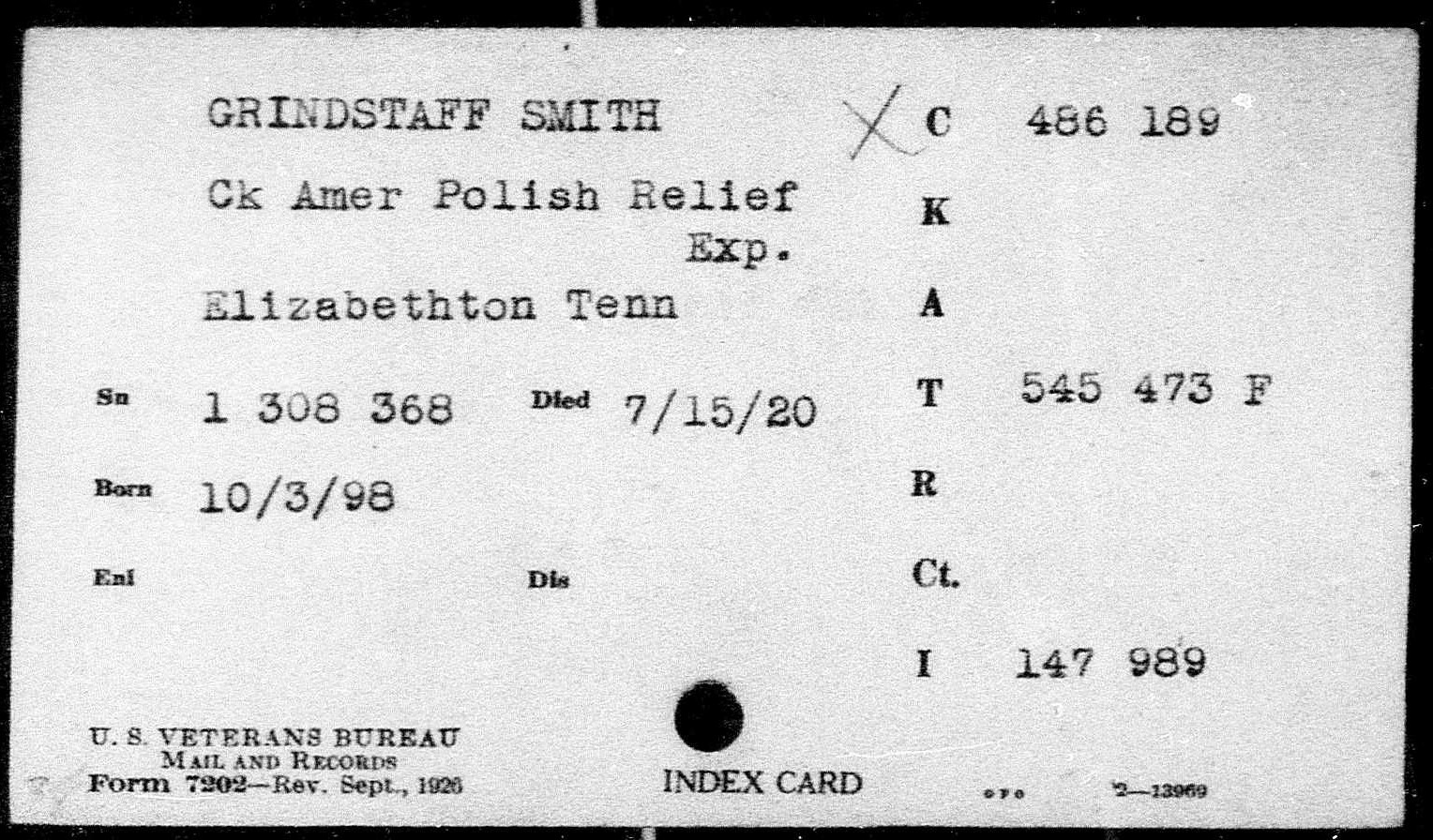 Smith Grindstaff was born in Carter County, Tennessee. He died at the age of 20.