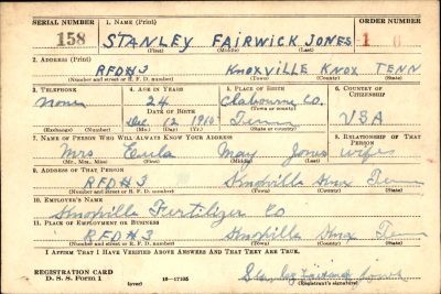 Stanley Fairwick Jones was the son of William Thomas Jones and Sarah Shiflet. He was married to Eula Masser and father of Barbara J. Jones and Vivian Faye Jones.