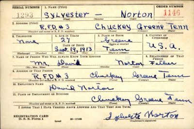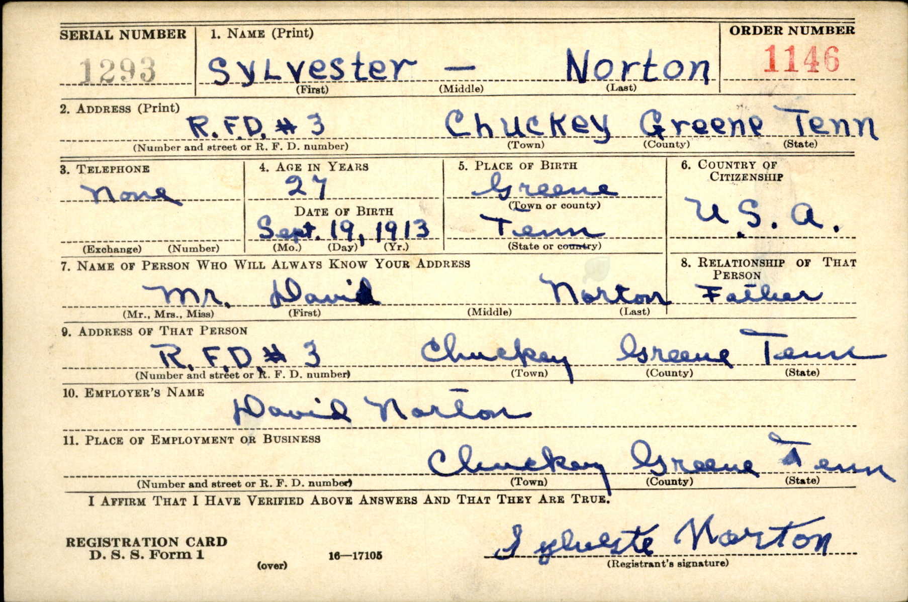 Sylvester Norton was born on 19 September 1913, the son of David Norton and Sarah Hensley. He is the cousin of John A. Norton