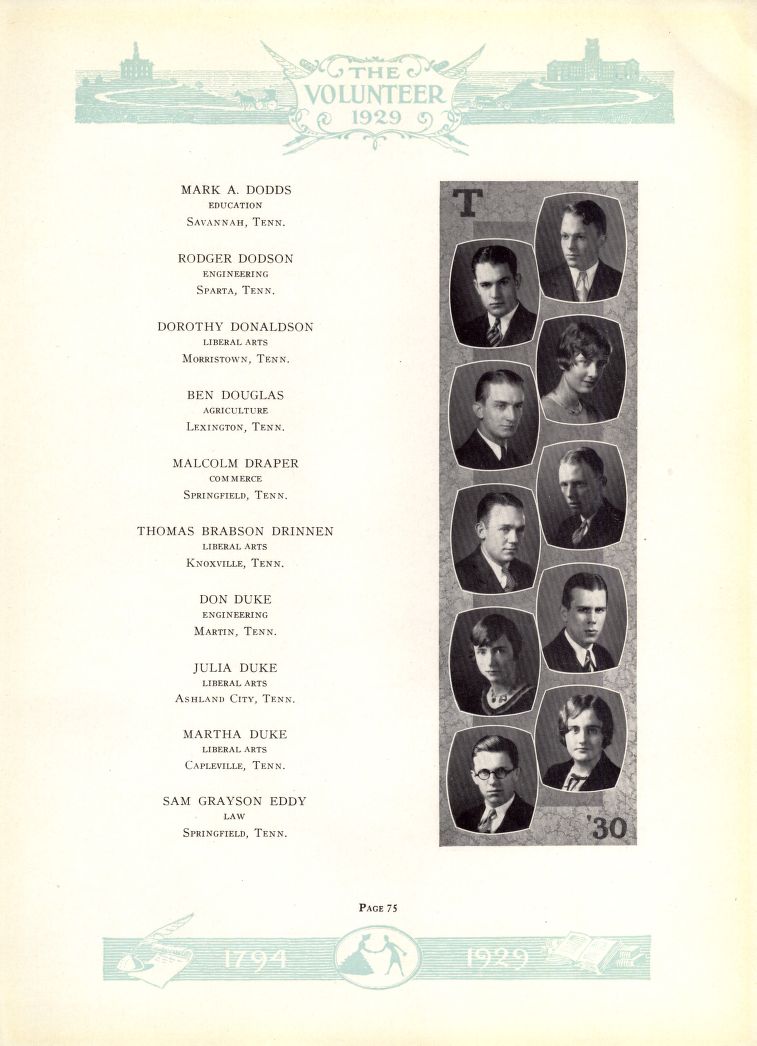 He was a junior at the University of Tennessee in 1929.