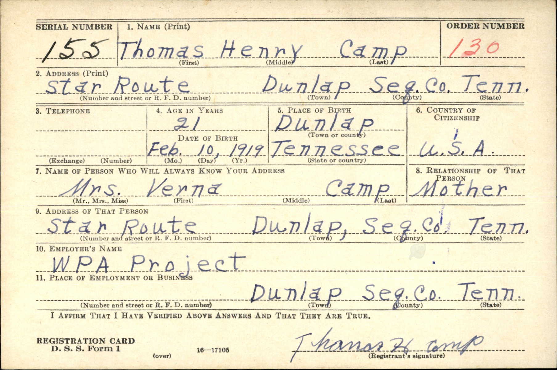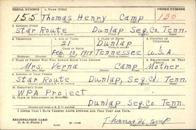 Thomas Henry Camp was the son of Dillard Wayne Camp and Verna Land. He was married to Bertie Rhea Richardson.