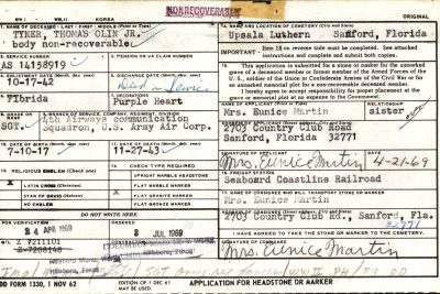 Sgt Tyner, Army Air Corps, is memorialized at the North Africa American Cemetery in Tunisia.