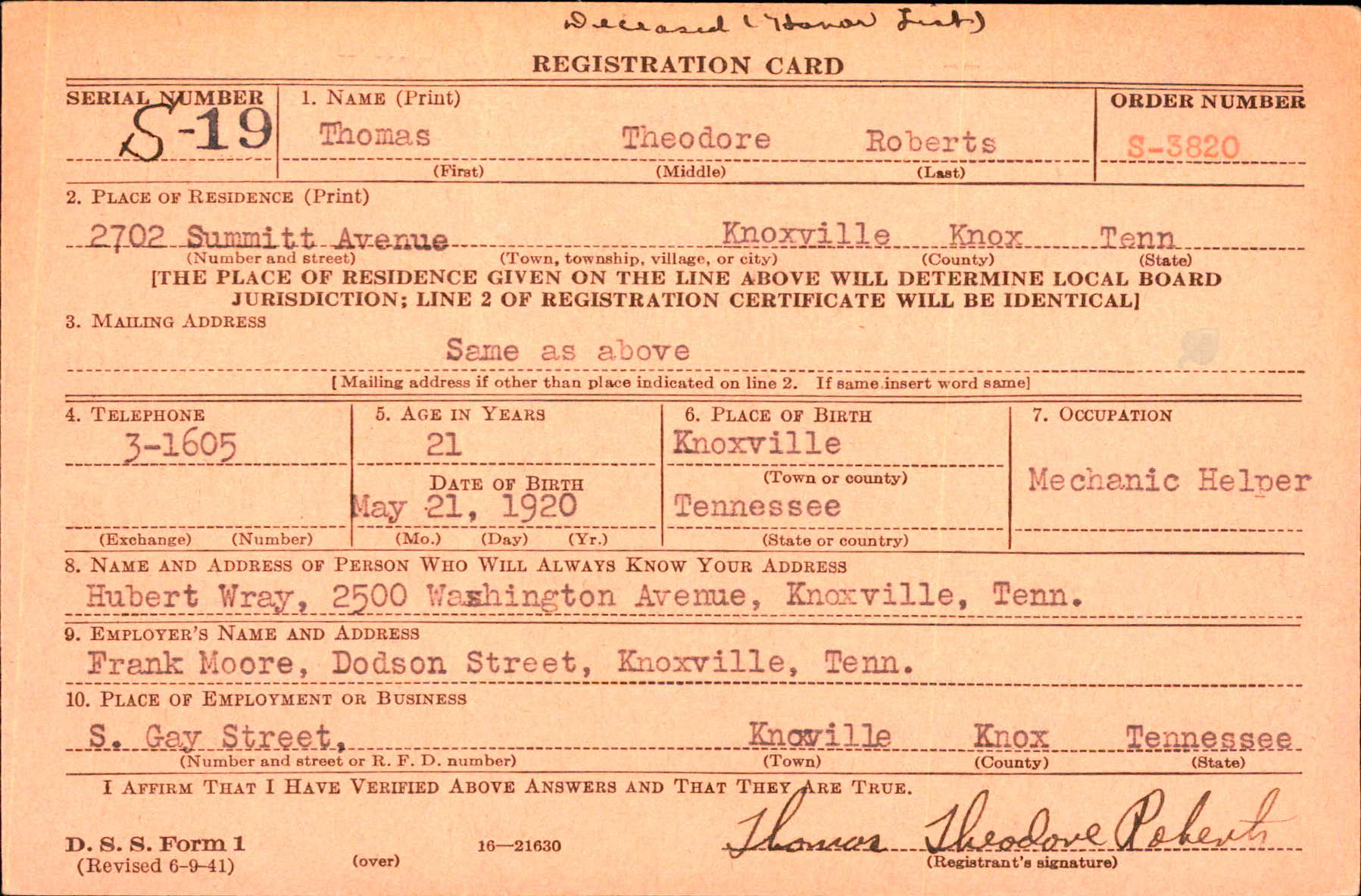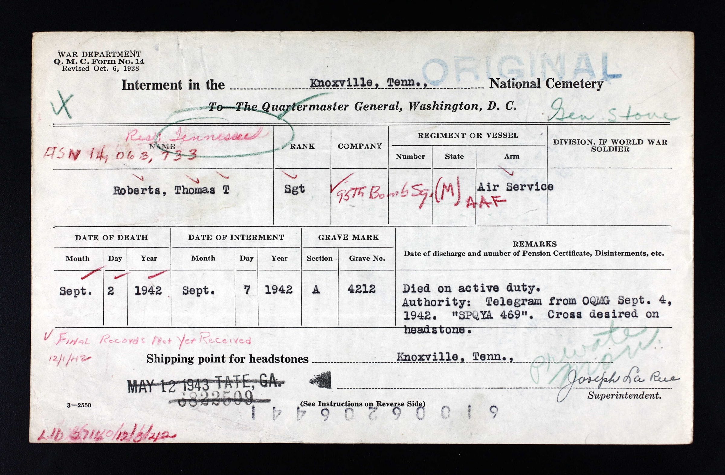 Sgt. Thomas Theodore Roberts, ASN: 14063733