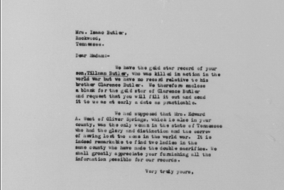 His brother Clarence F. Butler was killed in action in Fère-en-Tardenois, France and is also buried at Knoxville National Cemetery.