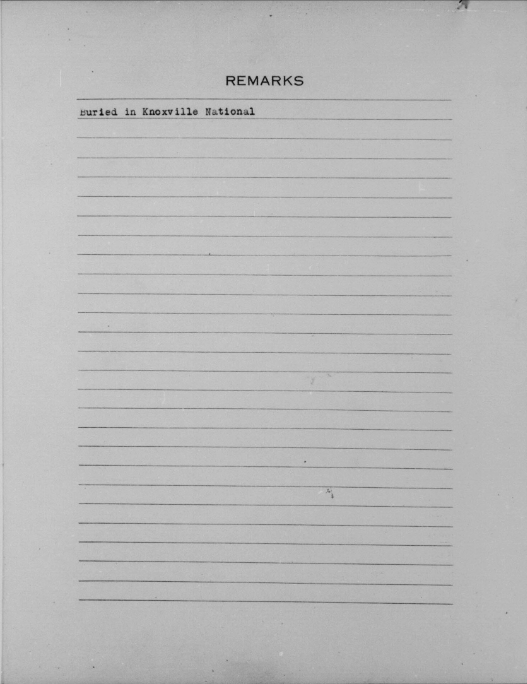 - Burial/Memorial Location: Knoxville National Cemetery, Knoxville, TN