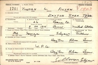 Tillman L. Filyaw was the son of George Washington and Ruey Filyaw. He was married to Bessie Filyaw and step-father of Jo Ann Myers.