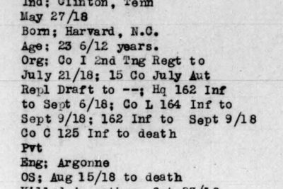 He died 23 October 1918 at the age of 23. Buried in plot E, row 17, grave 33, Meuse-Argonne American Cemetery, Romagne, France.