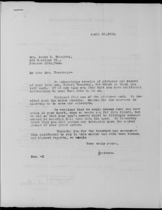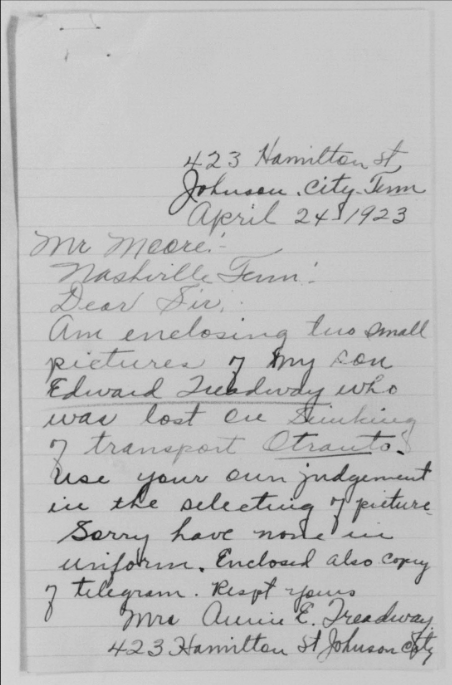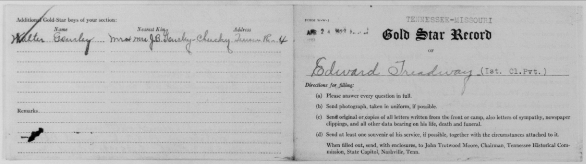 Thomas Edward (“Eddie”) Treadway was the son of John H. and Annie E. Treadway.