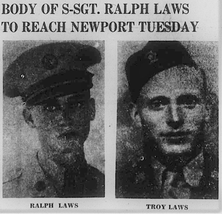 The body of S-Sgt. Ralph Laws, 24, is expected to reach Newport Tuesday afternoon at 4:54 on a Southern passenger train from Asheville.