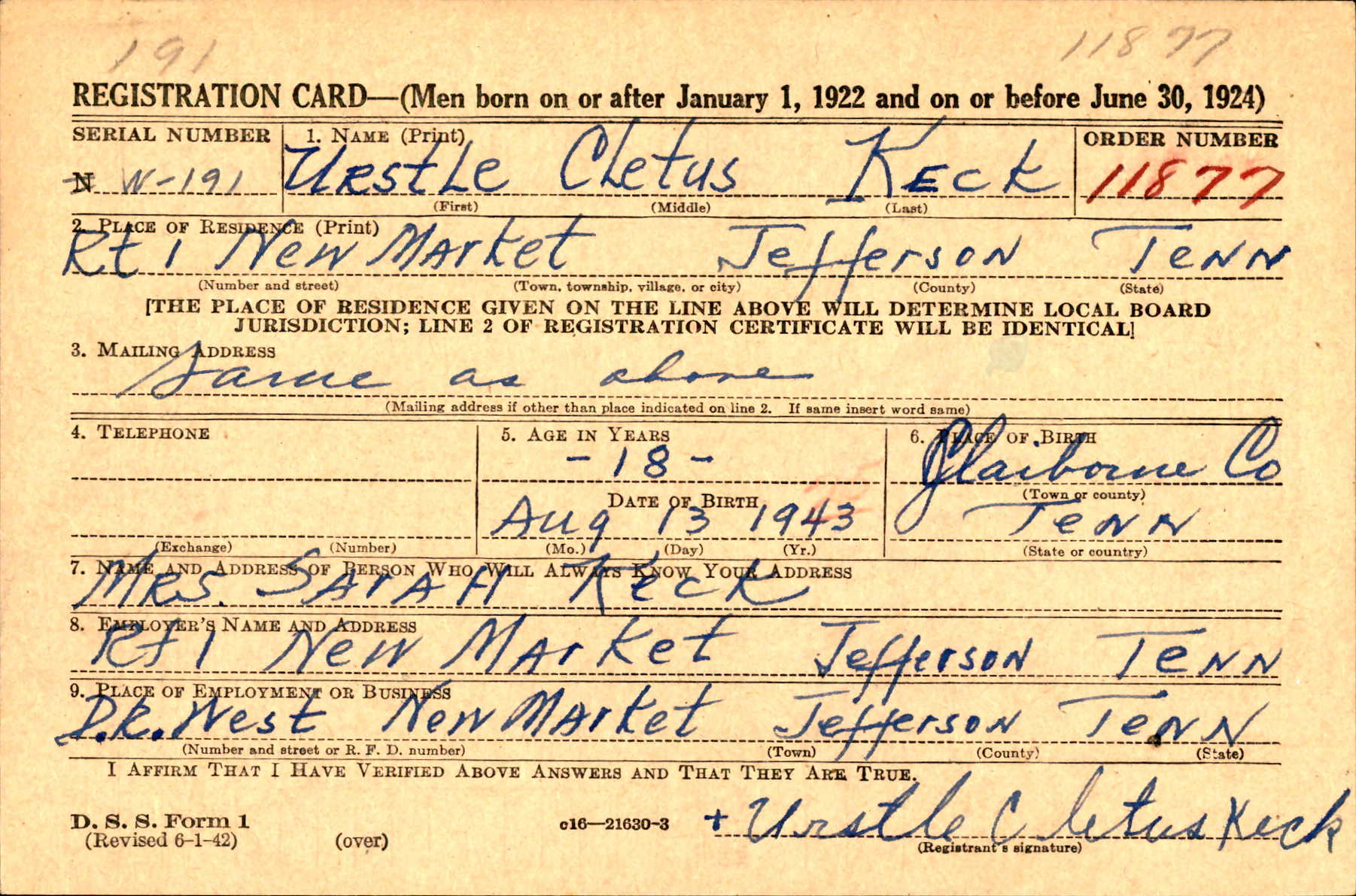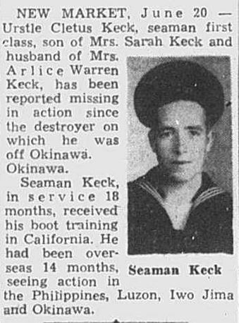 Urstle Cletus Keck was the son of Benjamin Franklin Keck and Sarah Louise Berry. Husband of Arlice Warren.