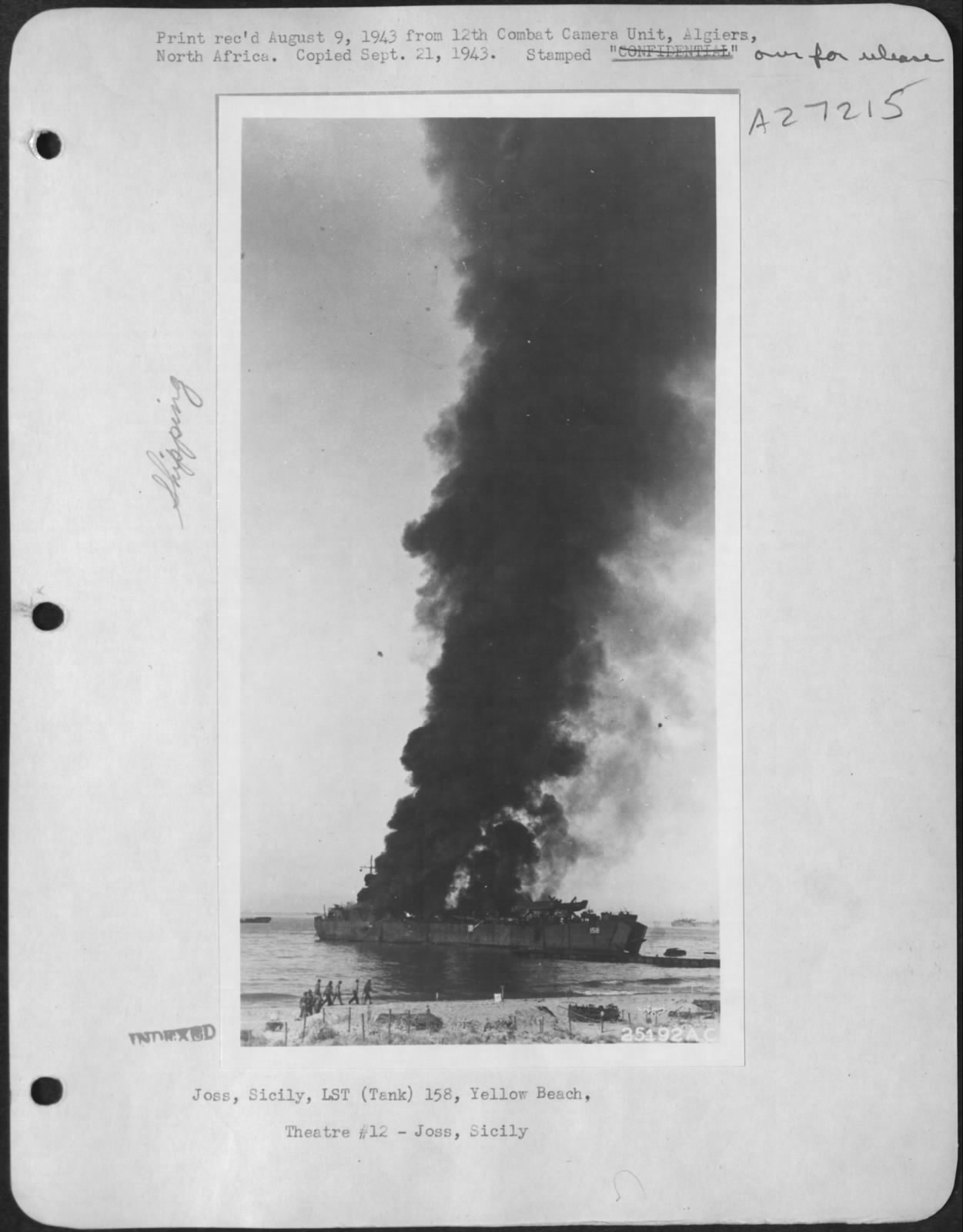 Walter E. York was killed in action on Ship USS LST-158 off shore of Red Beach, Licata, Sicily on 11 July 1943. After being bombed by a German aerial bomb on July 11, 1943. USS LST-158 earned two battle stars for WW II service. On report of burial from Division of Army cause of death is listed: Burned, his name tag was found on his body.