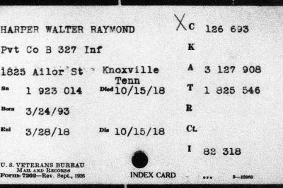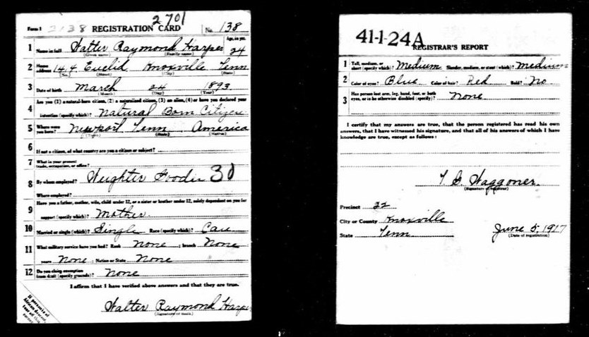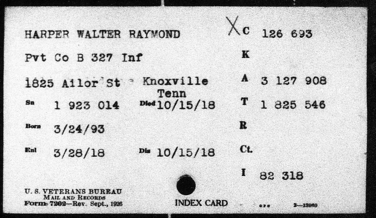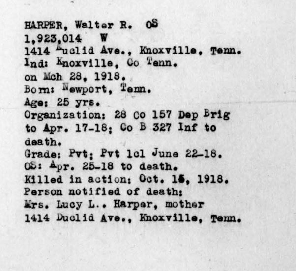 Walter Raymond Harper was born 24 March 1893, Newport, Tennessee, son of Lucy L. Harper.