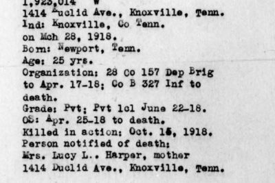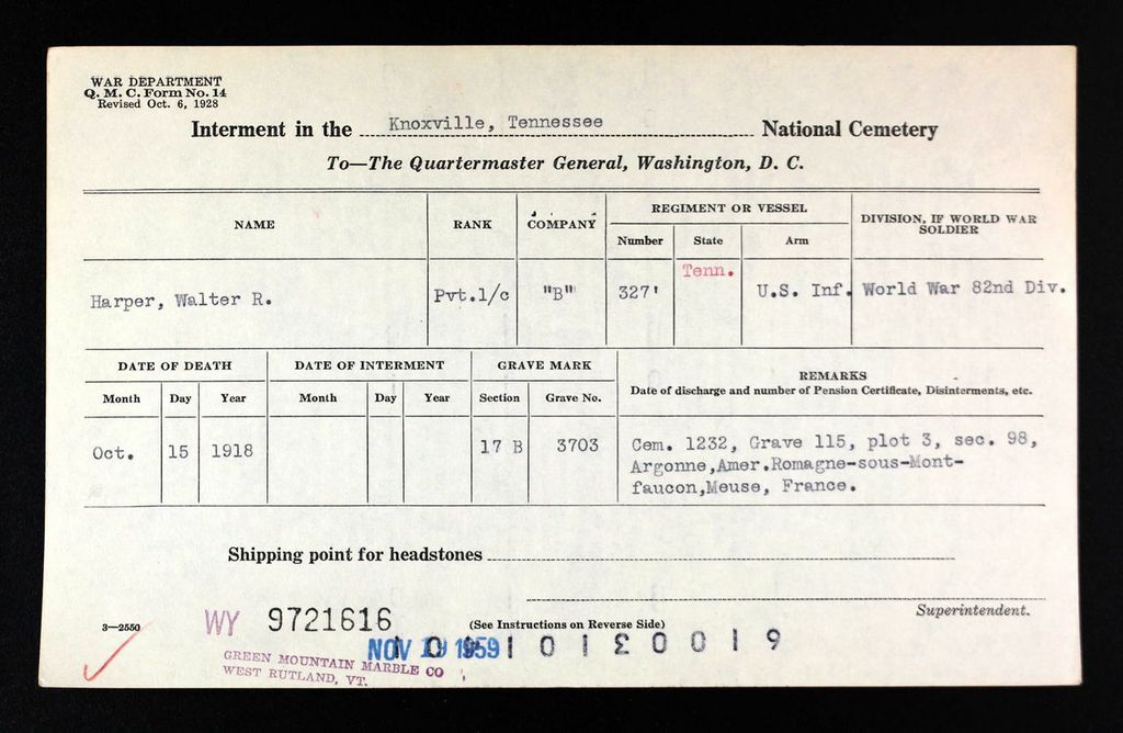 PFC Harper was initially buried at the Argonne, American Cemetery Romagne-sous-Montfaucon, Meuse in France.