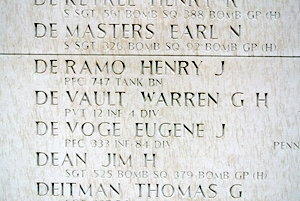 Private DeVault died on 20 Novemember 1944 and is remembered on the Tablets of the Missing, Netherlands American Cemetery, Margraten, Netherlands.