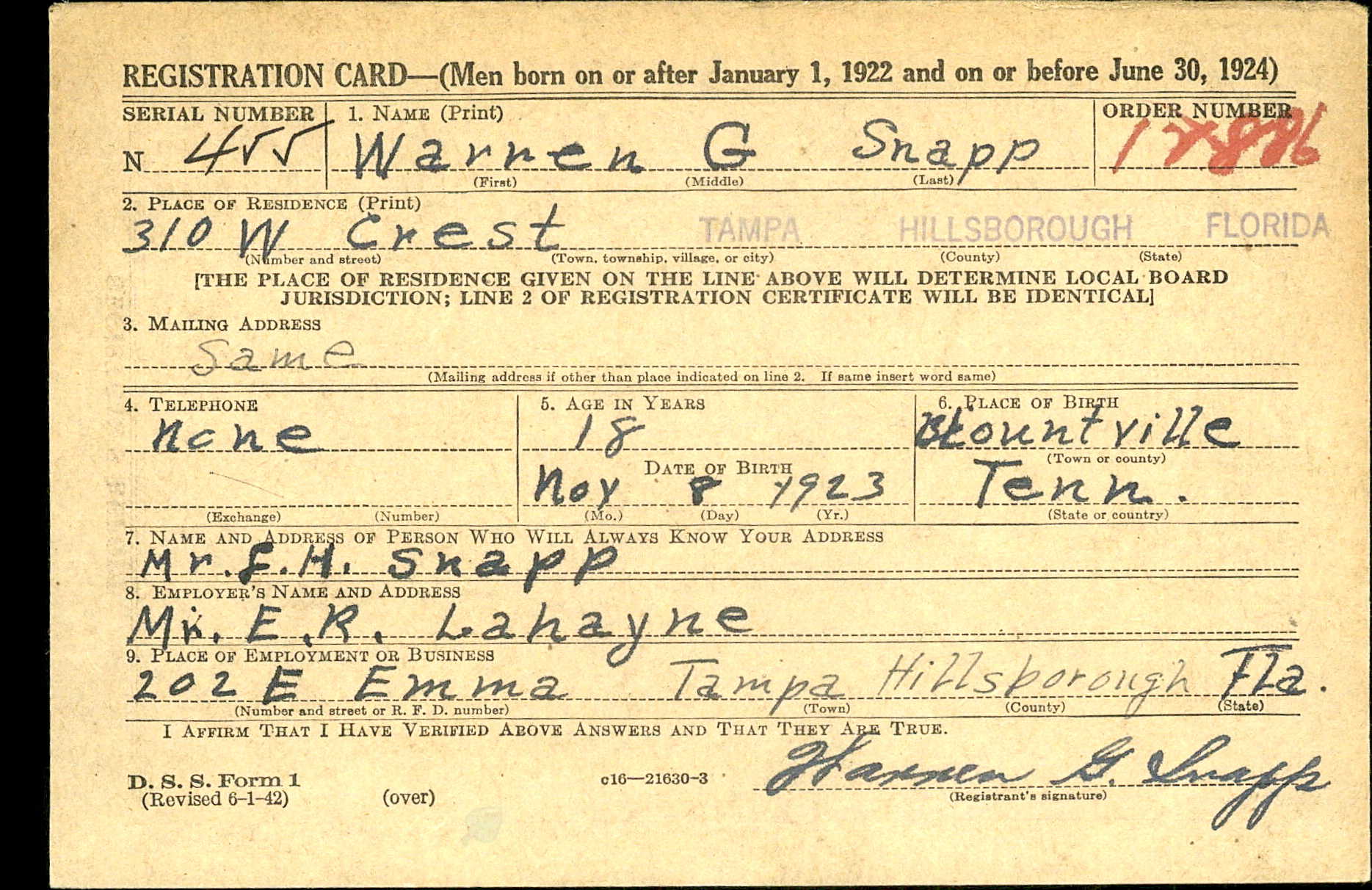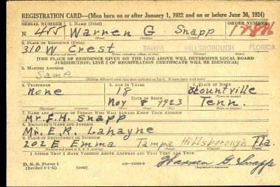 Warren Grant Snapp was born in Blountville, Tennessee, the son of Landon Hanes Snapp and Flora Elsa Baker.