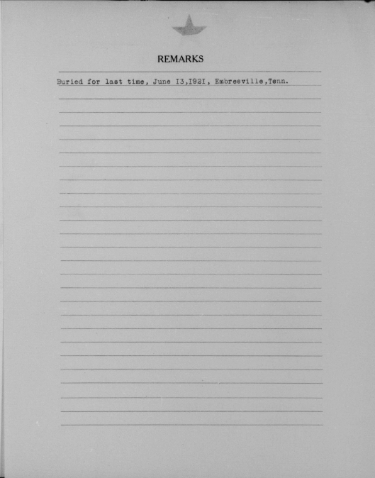 - Burial/Memorial Location: Bumpus Cove Cemetery, Embreeville, TN