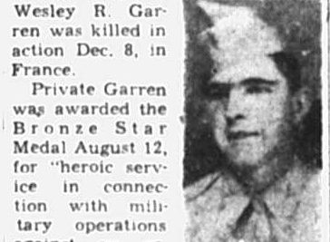 Wesley Garren was killed in action on Dec. 8, 1944.