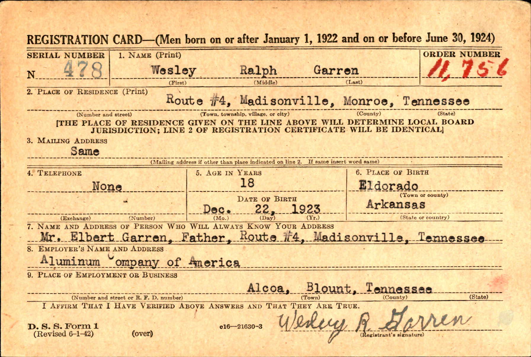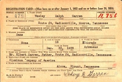 His family is proud of Wesley’s service, and his brother Joe Garren of Riceville helped contribute to this memorial page.