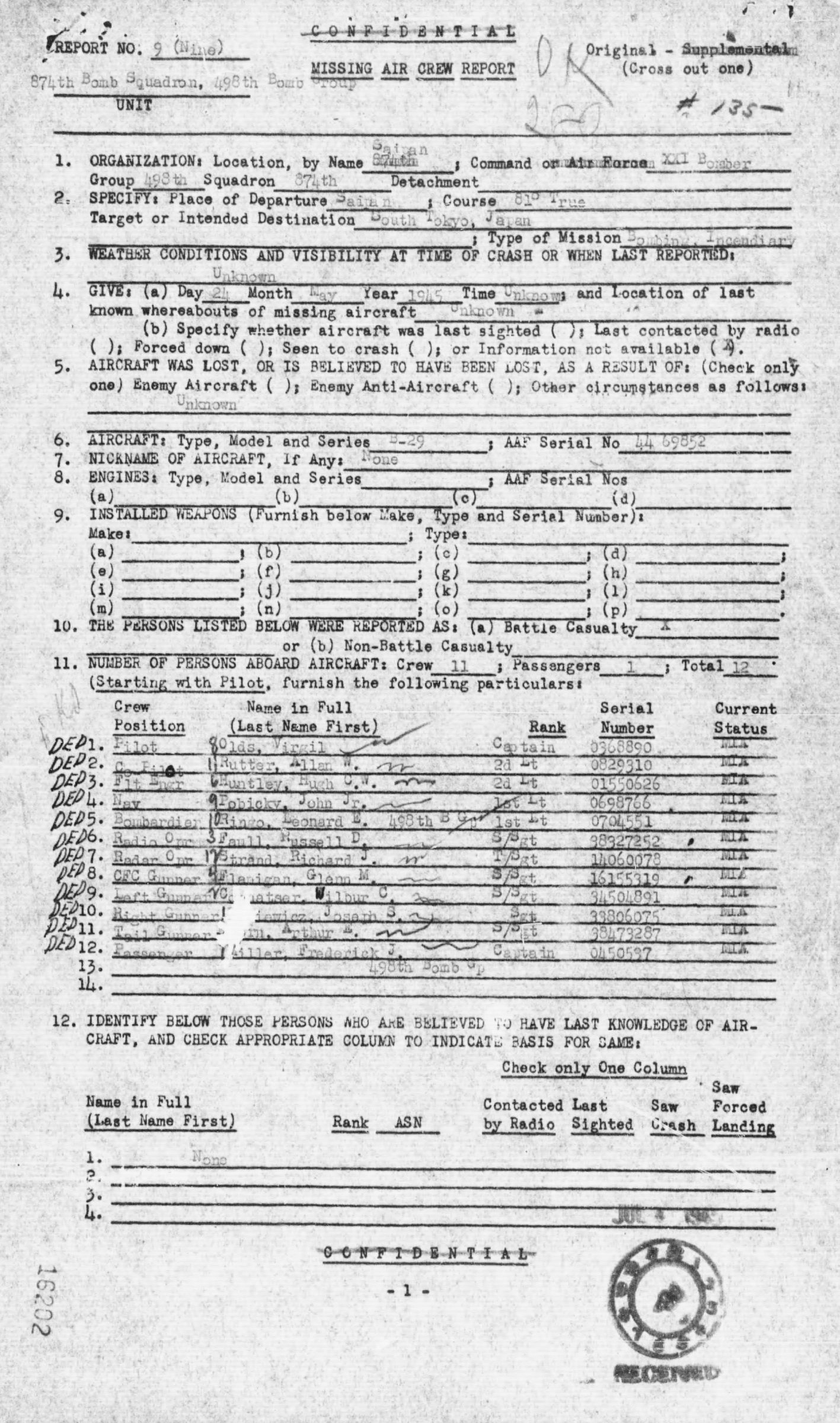 - Division/Assignment: 874th Bomber Squadron, 498th Bomber Group, Very Heavy