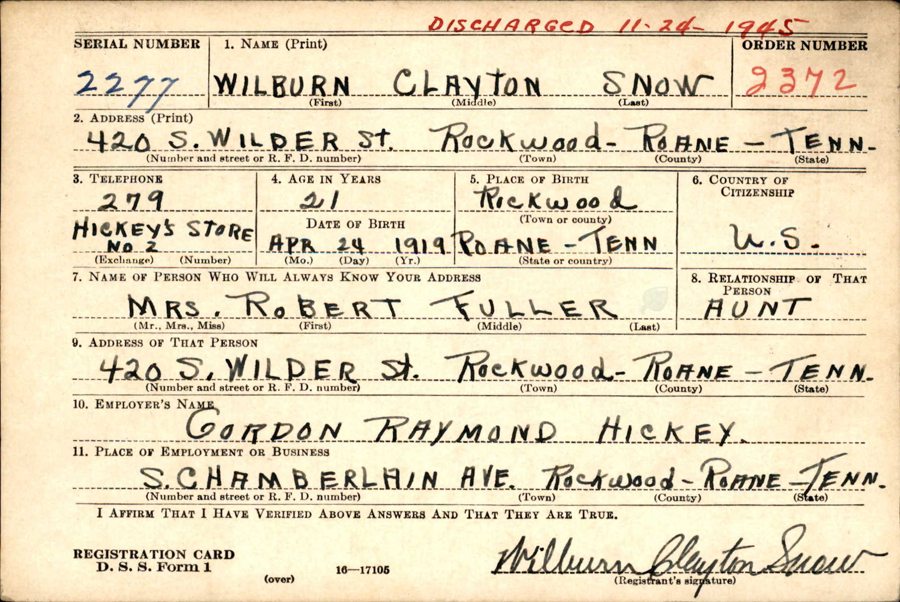 Wilburn Clayton Snow was the son of Larkin Bethel Snow and Anna Mae Griffith. Husband of Juanita Walker.