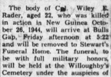 - Burial/Memorial Location: Willoughby Cemetery, Bulls Gap, TN