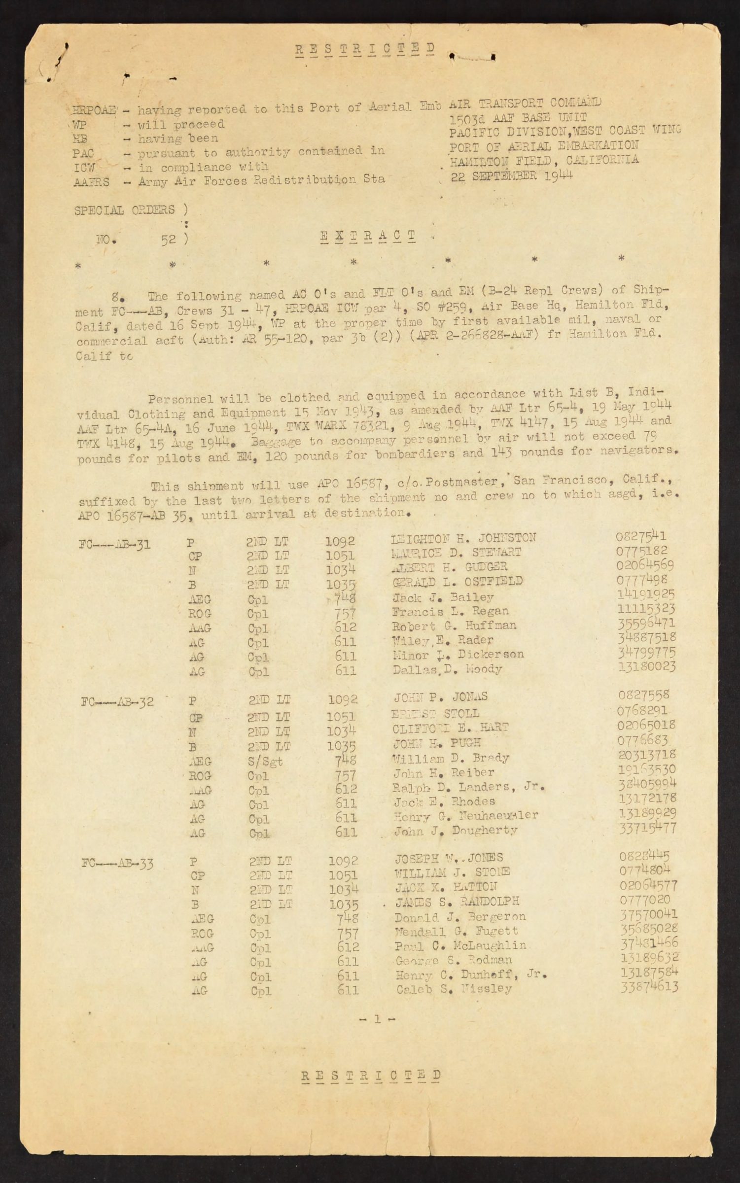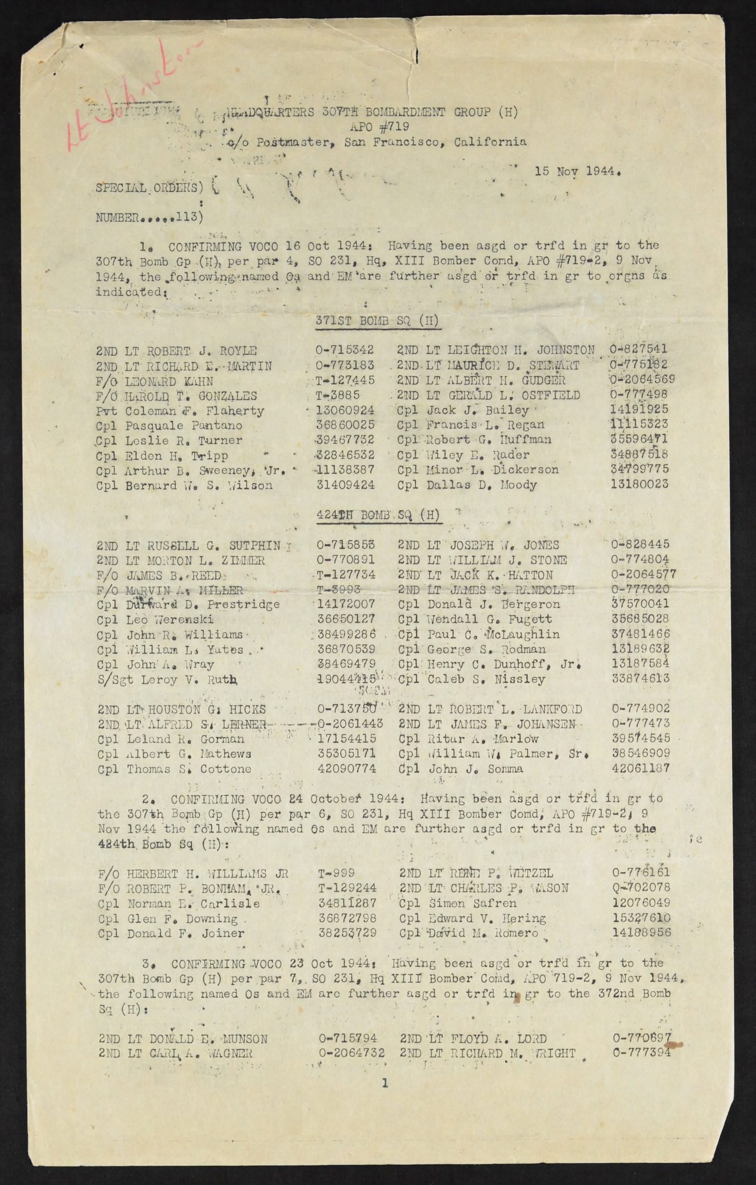 - Division/Assignment: 371st Bomber Squadron, 307th Bomber Group