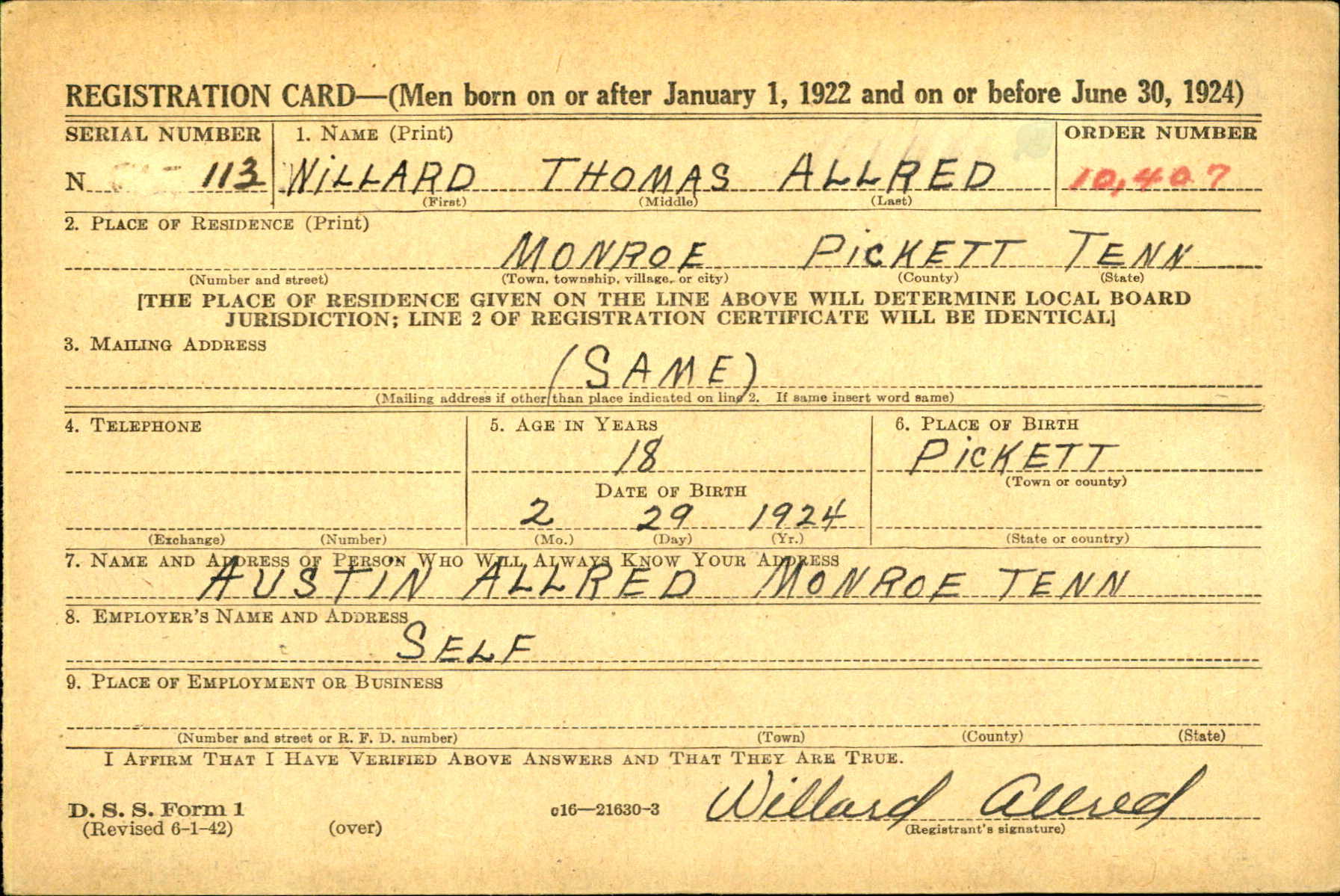Willard Thomas Allred was the son of Austin Allred and Grace Ann Cooper.