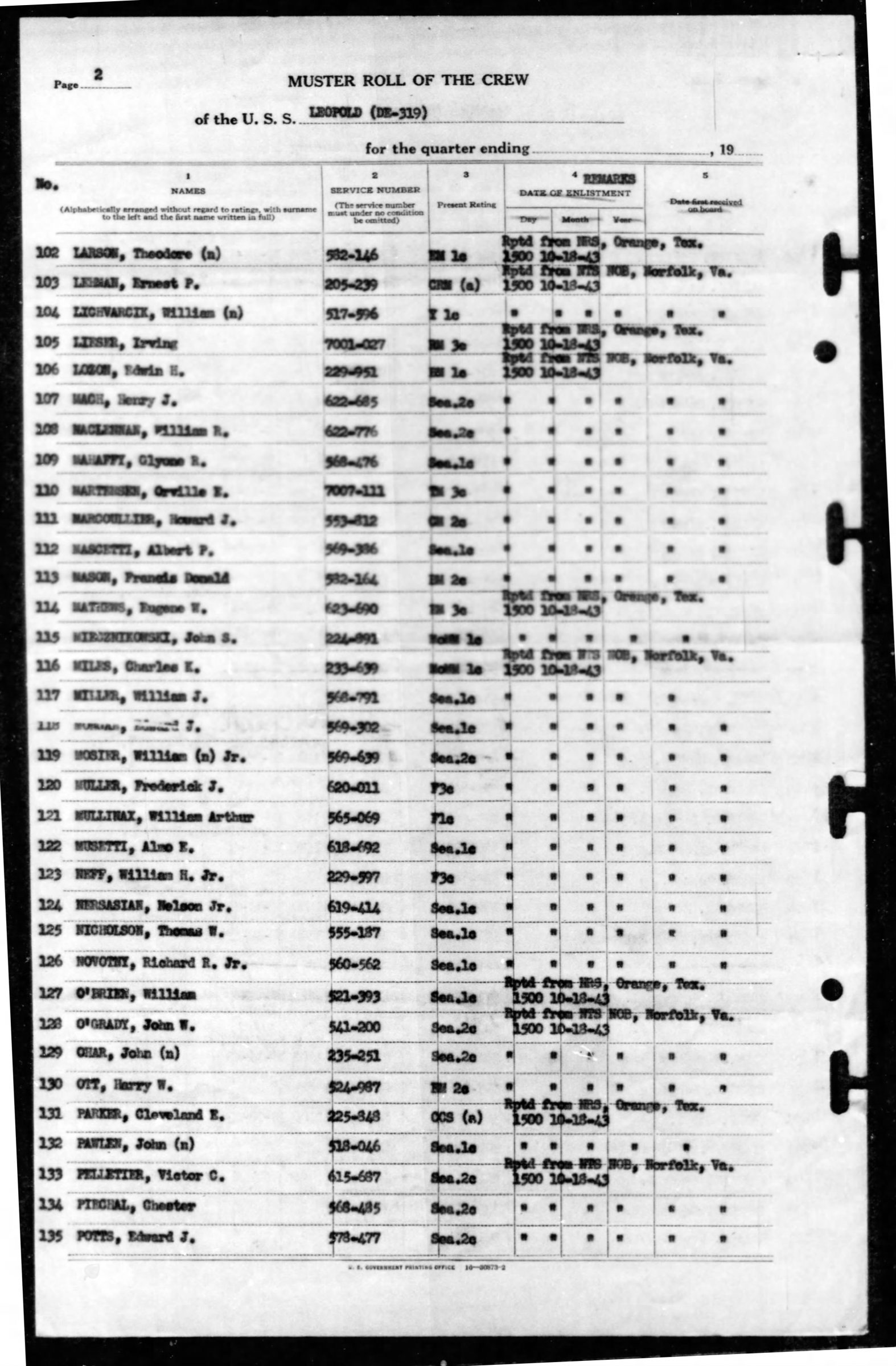 - Division/Assignment: USS Leopold (DE-319)