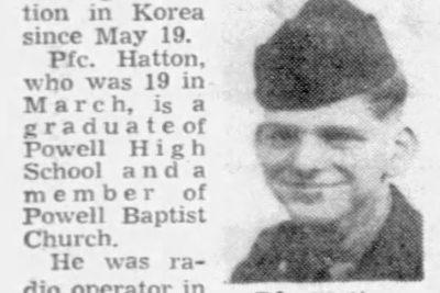 Private First Class Hatton was a radio operator for the 38th Infantry Regiment, 2nd Infantry Division, United States Army. He was killed in action while fighting the Communist Chinese forces on May 19, 1951, near Bunker Hill-Hill 1051 area of South Korea. Private First Class Hatton was returned to Knoxville on December 11, 1951, and funeral services were held the following day at Powell Baptist Church with interment services at Bookwalter Cemetery. Private First Class Hatton was awarded the Purple Heart, the Combat Infantrymans Badge, the Korean Service Medal, the United Nations Service Medal, the National Defense Service Medal, and the Korean War Service Medal.