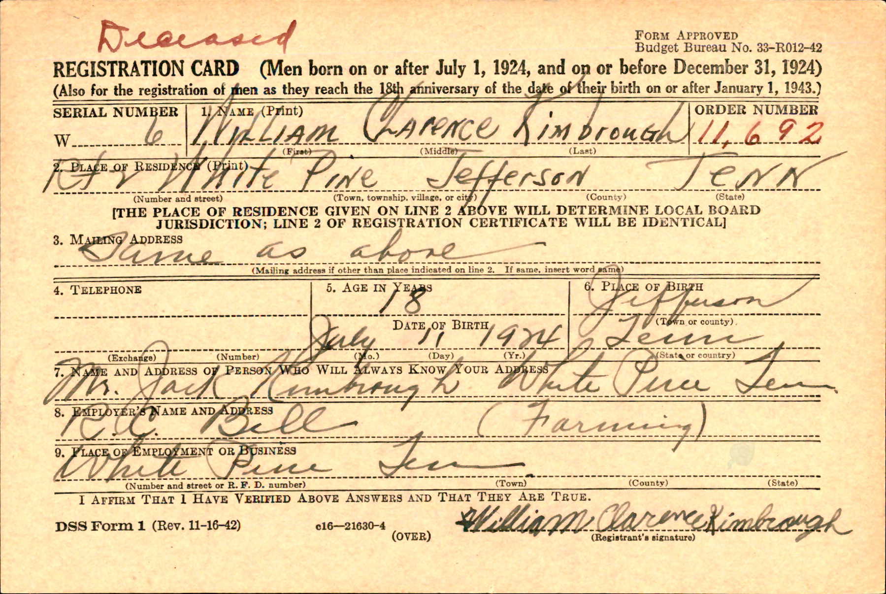 William Clarence Kimbrough was born 11 July 1924 to Jack Kimbrough and Charlsie Sexton