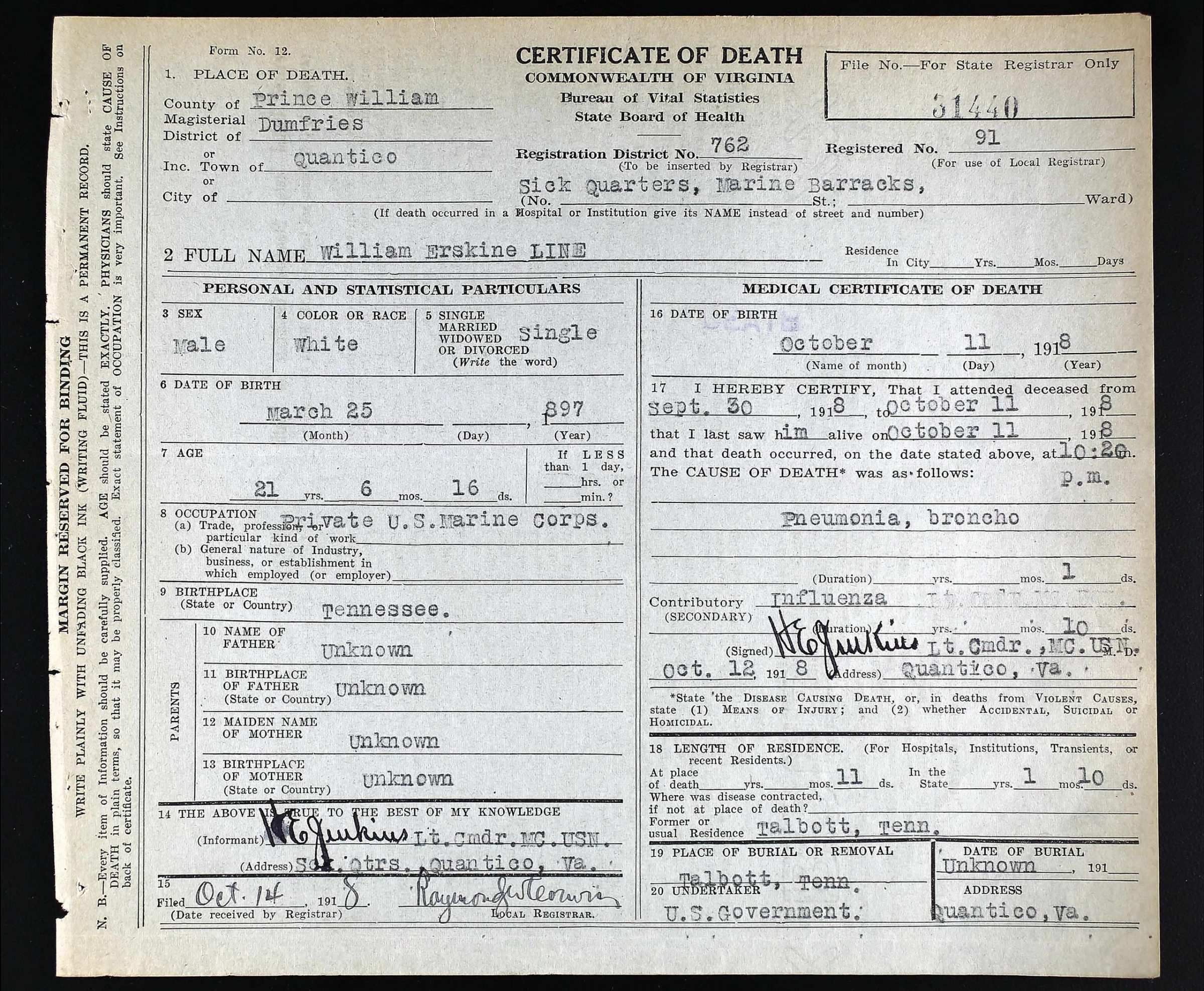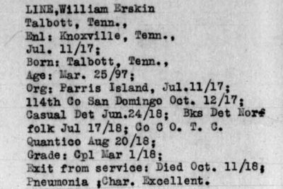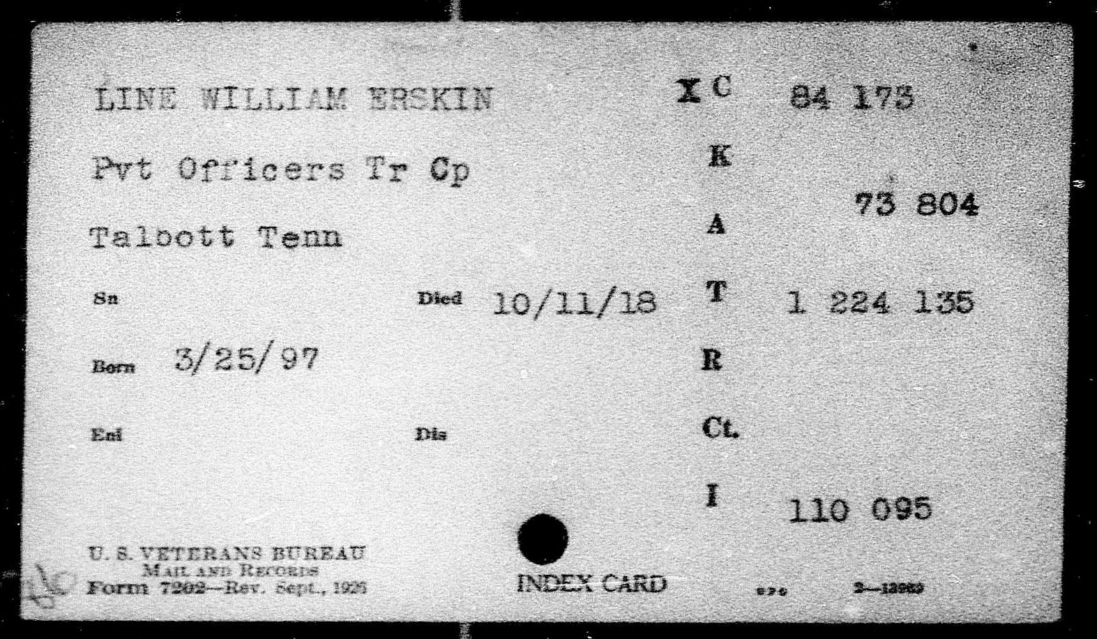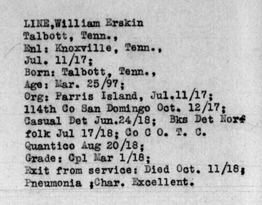 William Erskine Line was born in 1897 in Talbott, Tennessee.